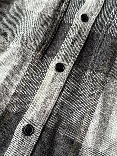 グレーとブラックを基調としたストイックな配色のヘビーネルシャツ